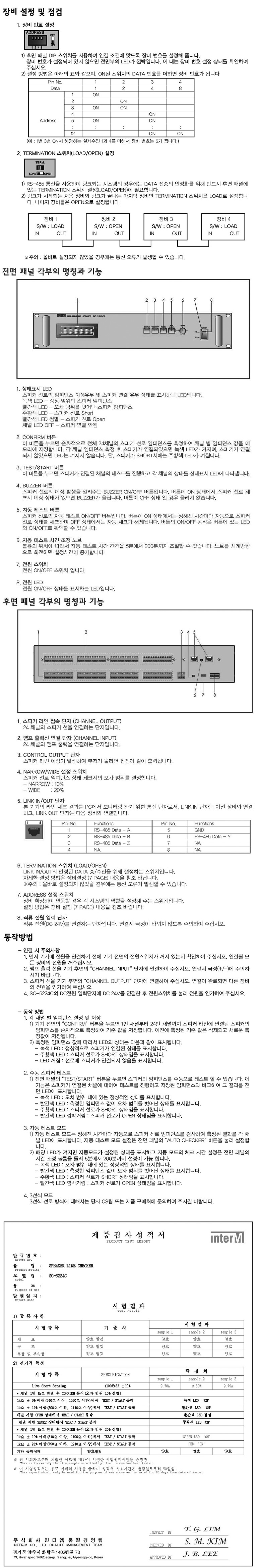 SC-6224C, 인터엠 스피커 라인 체커기,스피커 선로의 단락, 단선 체크, 실시간 체크 및 수동, 자동(스케쥴링) 체크,SC6224C 본문