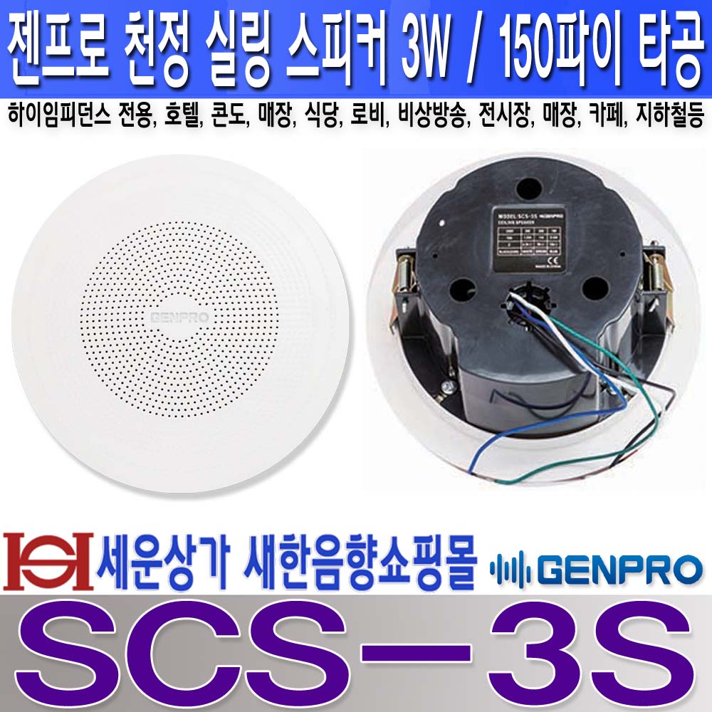 SCS-3S 젠프로 소형 실링스피커 3W, 천정 매립형 150파이 타공,SCS3S