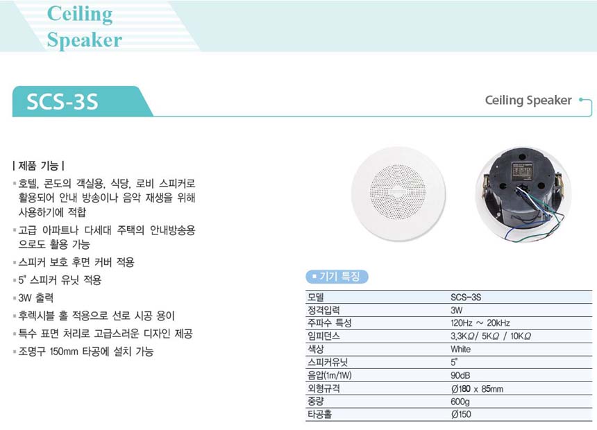* 제품의 특징 및 사양 ( SCS-3S 젠프로 실링 스피커 )