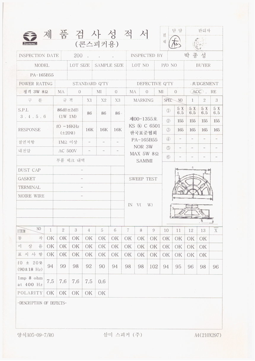 - 제조사 : (주)삼미스피커 (충북 음성)