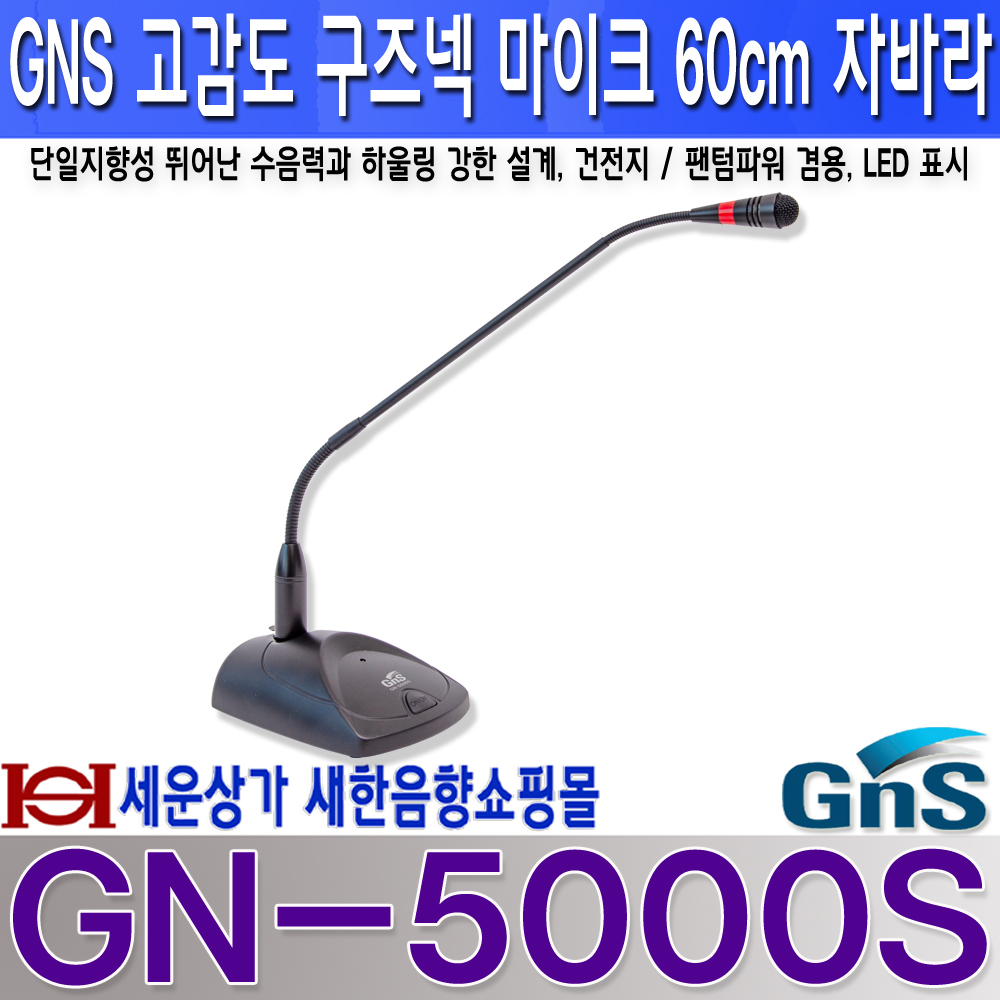 GN-5000S 고감도 구즈넥마이크 60cm 자바라, 하울링 강한 설계, 건전지 팬텀파워 겸용, GN5000S 본문