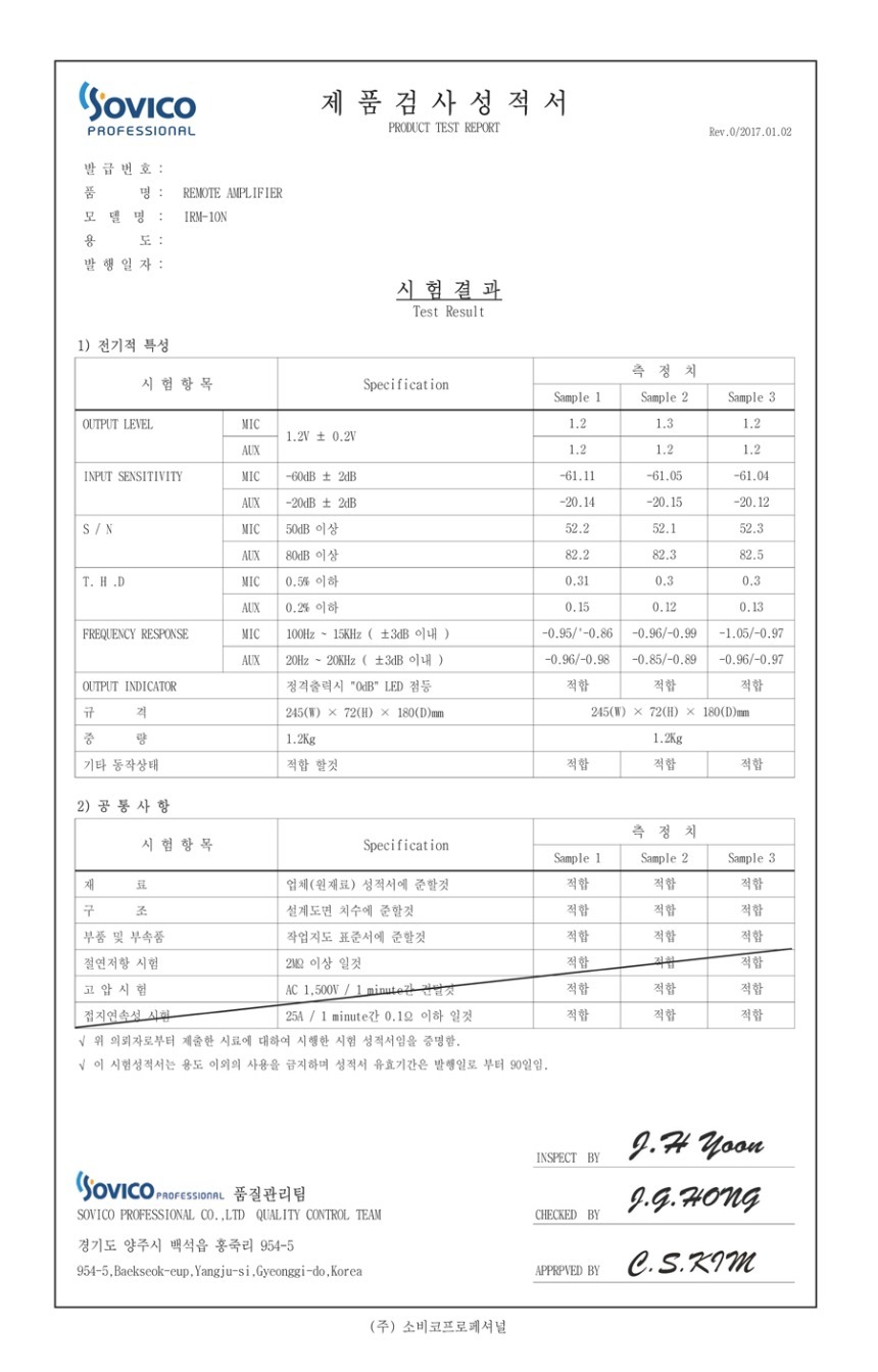 - 주파수 특성(±3dB): MIC:100Hz~15KHz / AUX:20Hz~20KHz