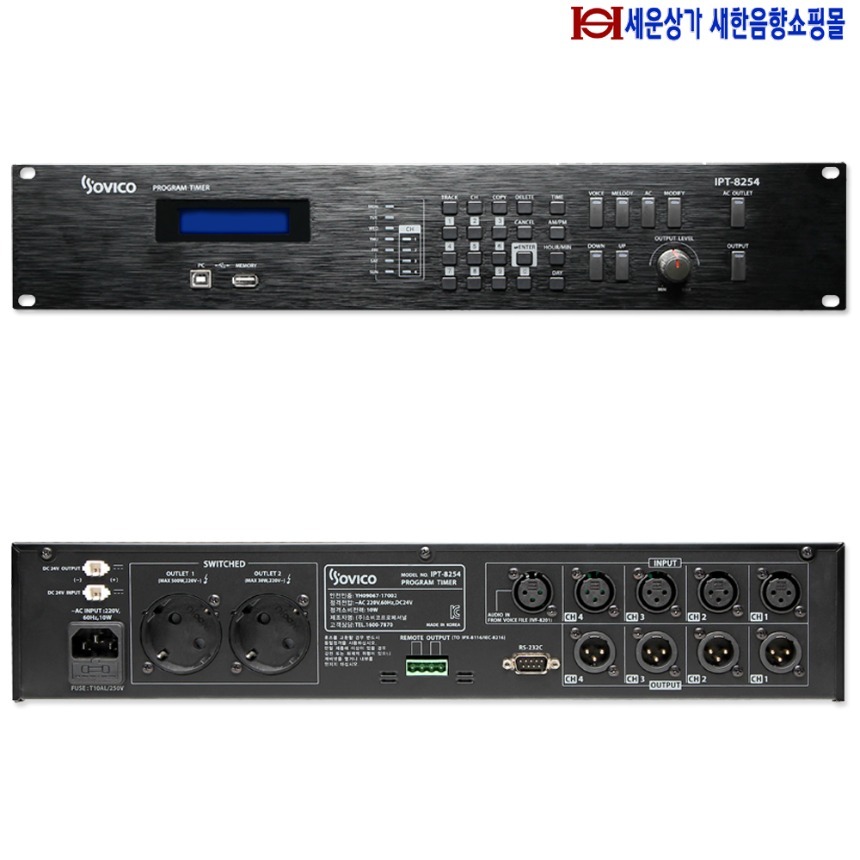 IPT-8254A, 소비코(SOVICO) 주간차임벨타이머 신제품,메모리 내장 음원 추가/변경 가능.정전 보상기능,PC 프로그램 예약 인터페이스, 15개 멜로디 내장,요일별 예약기능, 예약 백업기능,IPT8254A 시보기
