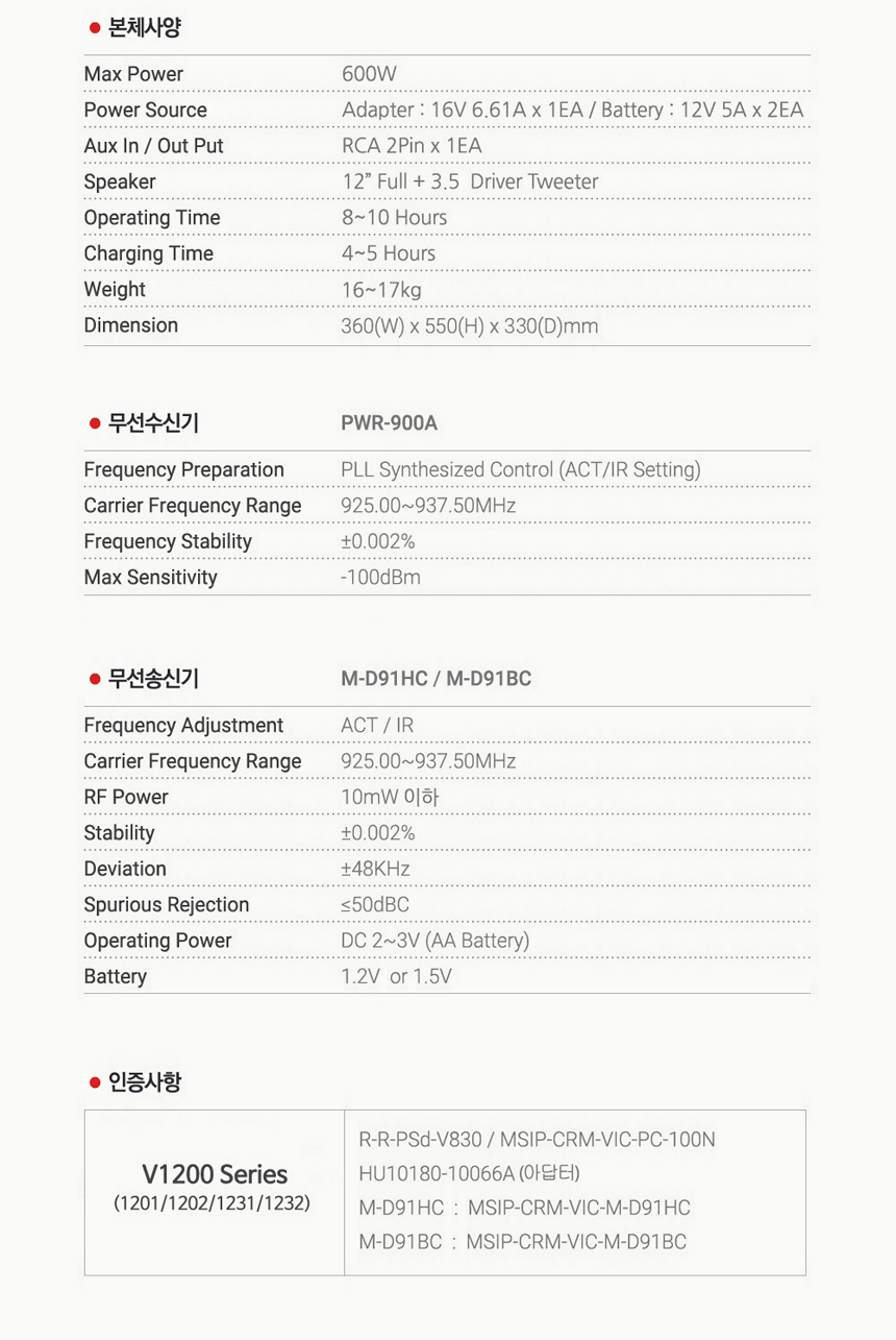 * 제품의 특징 및 사양 ( PWA-V1204 프로사운드 대출력 충전 이동식 엠프 )
