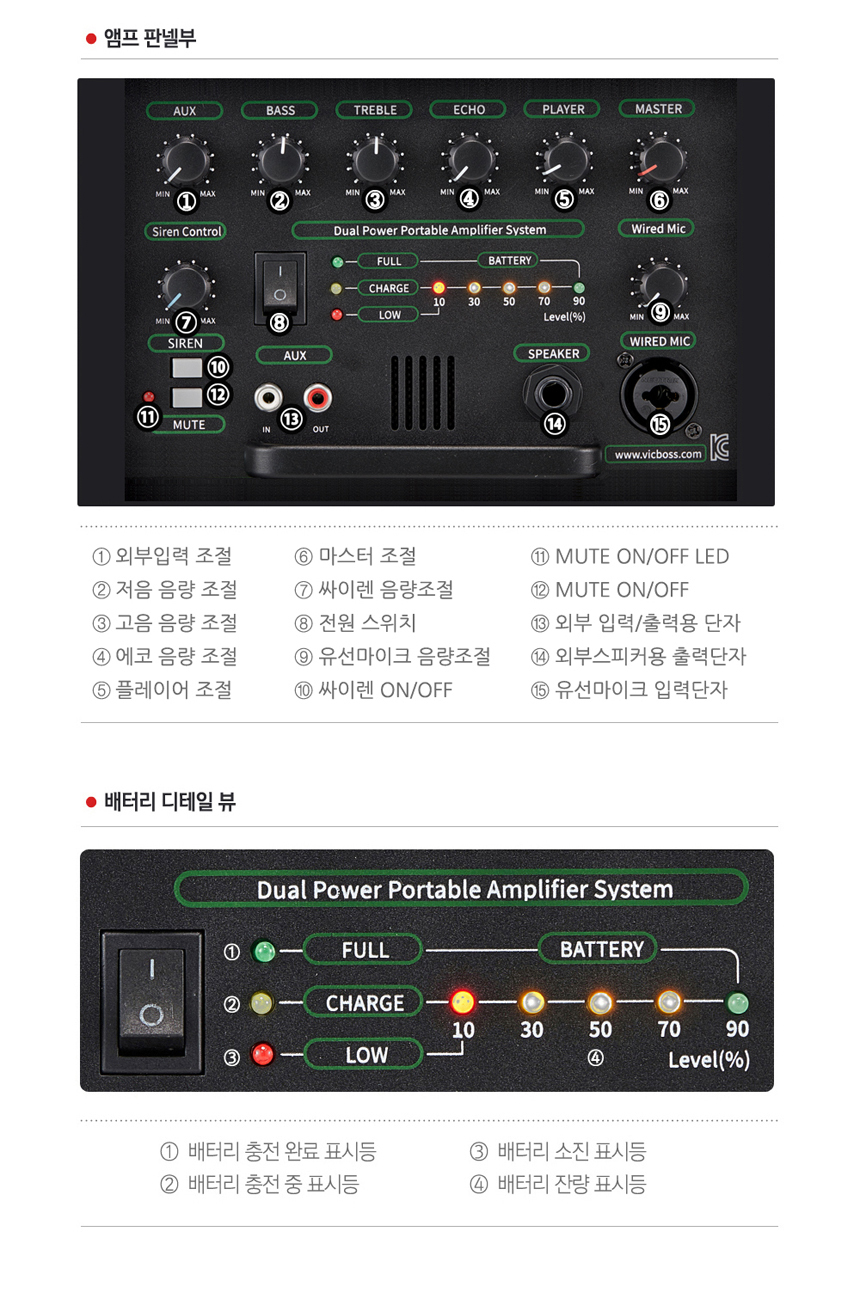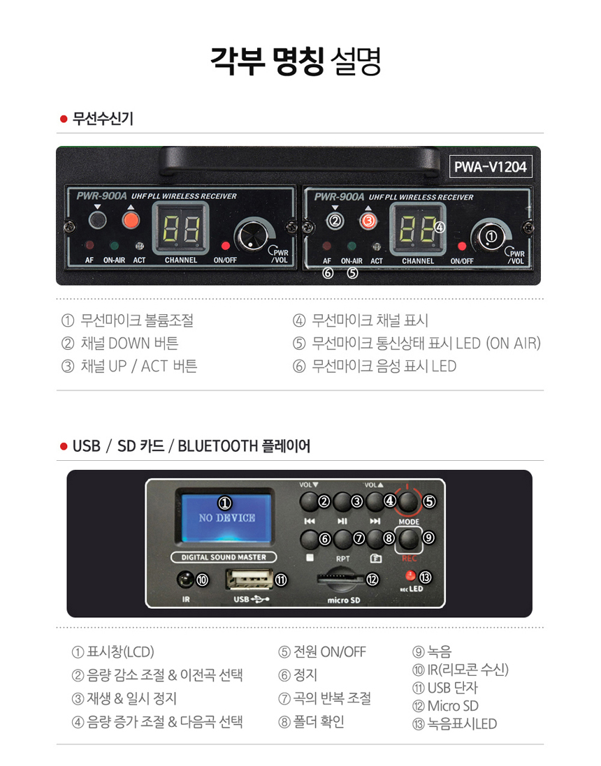블루투스, USB, SD CARD, 녹음, 에코, 마이크 뮤트, 싸이렌 기능