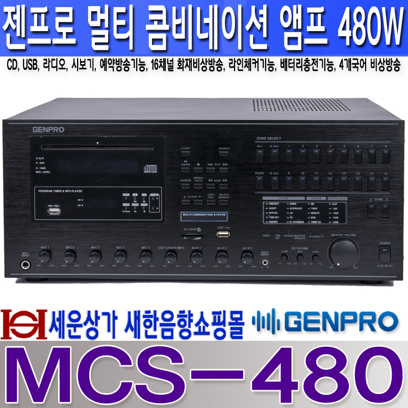 MCS-480 젠프로 비상방송앰프 480W, CD USB 라디오 시보기 기능,16회로,라인체커기내장,4개국어 비상방송 송출. 화재 비상 방송 앰프 MCS480
