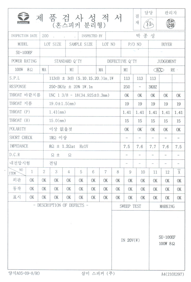 #SU100EF #SAMMI #삼미스피커 #삼미혼드라이버유니트 #삼미100W유니트