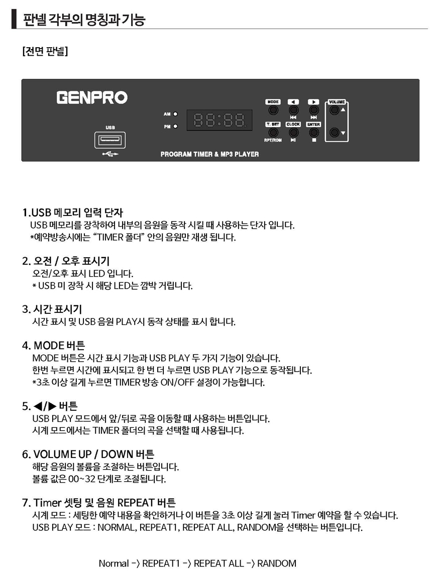 USB 메모리 음원(TIMER 폴더)을 50개까지 예약방송