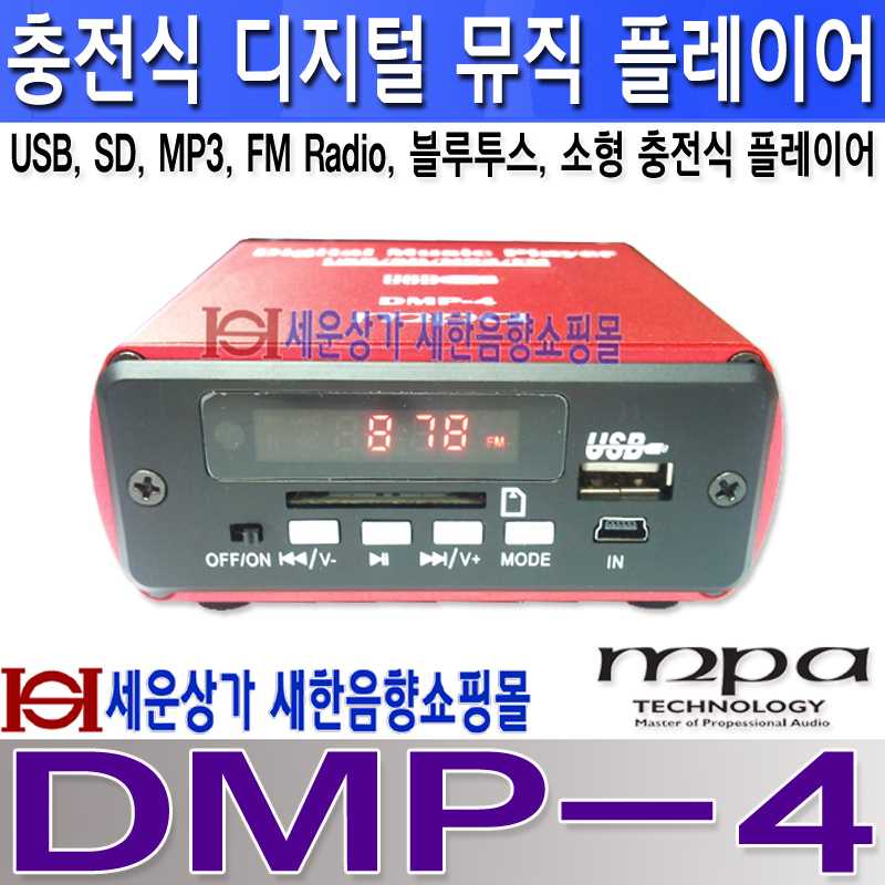 DMP-4, 충전식 디지털 뮤직 플레이어, USB,SD,FM 라디오 플레이어,제품구성품:리모콘,충전기,USB충전케이블. DMP4