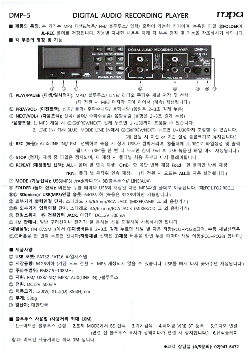 #DMP5 #디지털레코딩플레이어 #레코딩플레이어 #녹음장비 #홈레코딩장비 #USB플레이어 #블루투스플레이어
