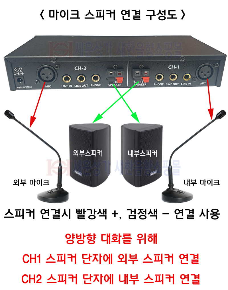 " 안에서 방송하면 밖에서 듣고, 밖에서 방송하면 안에서 듣고, 양방향 방송 가능한 앰프 "