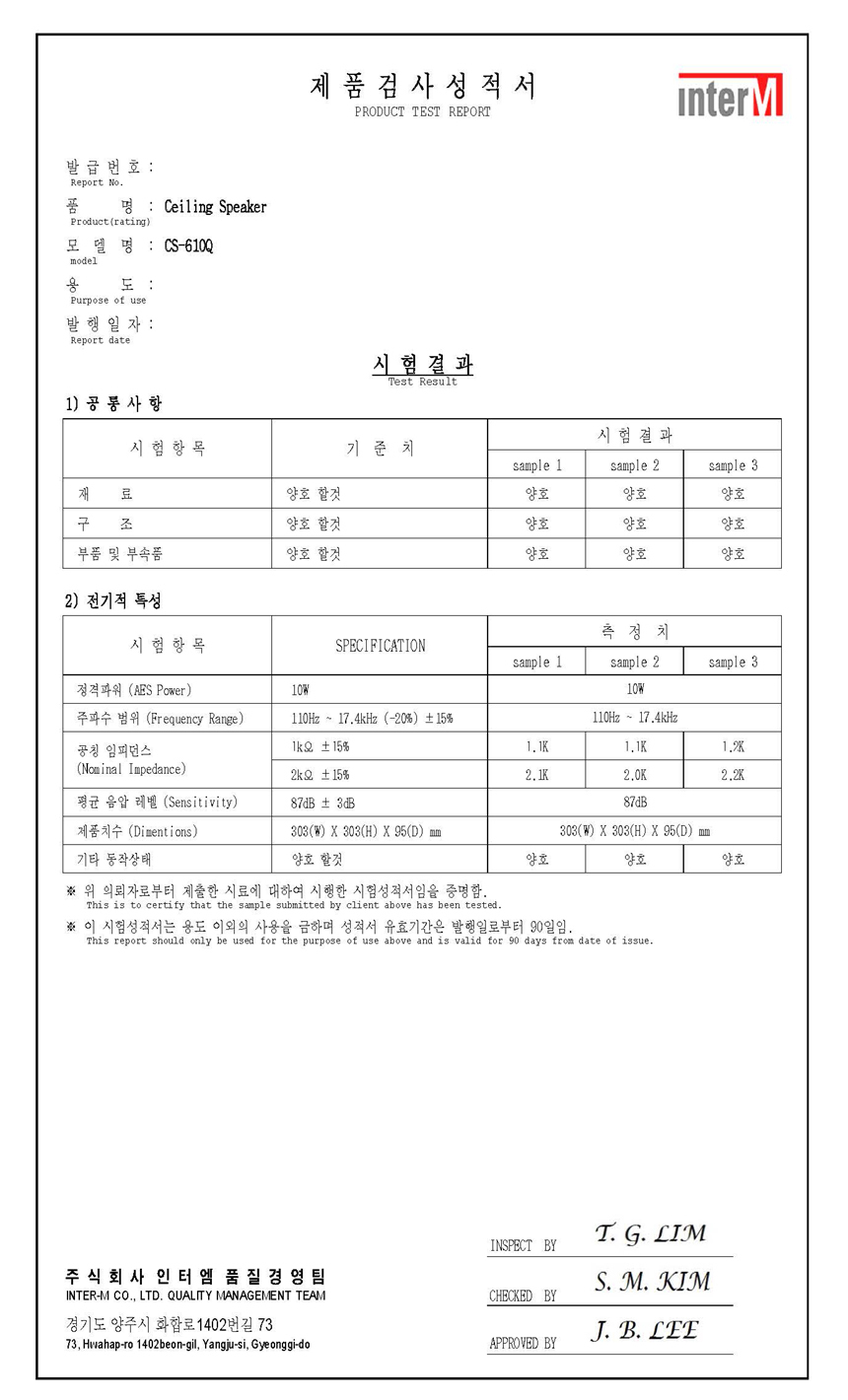 * 제품의 특징 및 사양 ( CS-610Q 인터엠 사각 실링 스피커 )