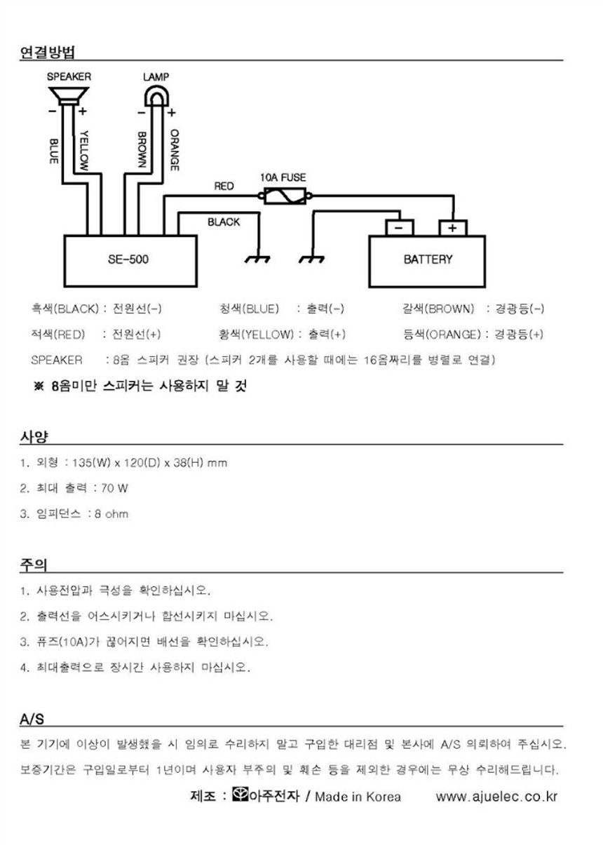 SE-500 (SE-300 신모델),자동차,오토바이등에 사용 가능한 50W 소형 싸이렌 앰프,경광등 연결기능,외부입력기능. 싸이렌 앰프 SE500 본문