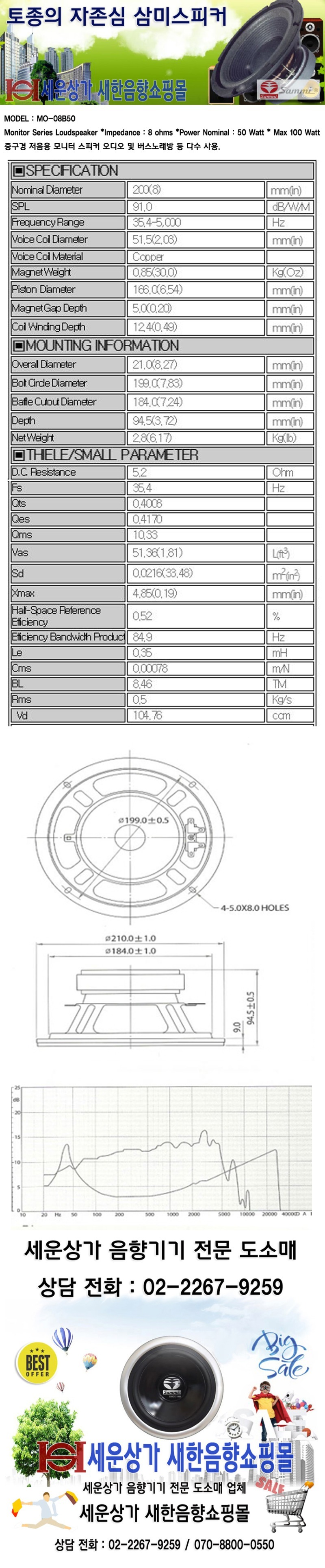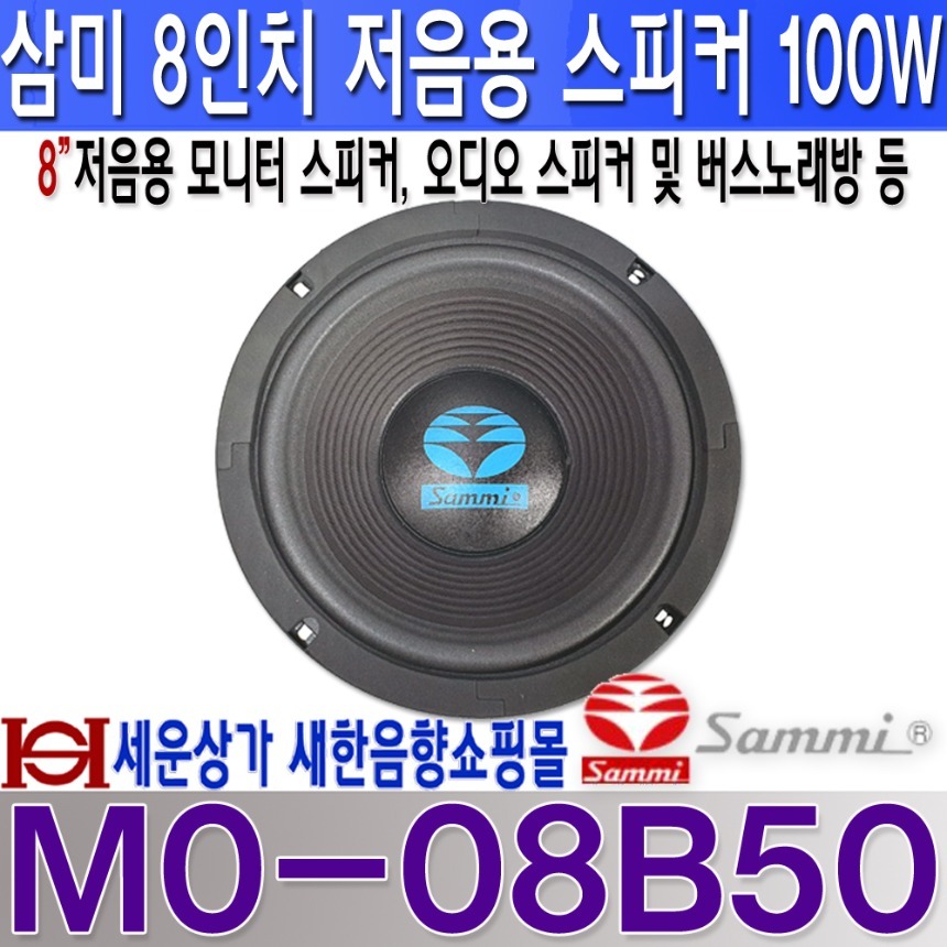 MO-08B50, 8인치 삼미스피커,정격50W, 최대 100W/오디오 스피커,노래방 스피커,버스 스피커,공연 스피커,극장 스피커,승용차 스피커등 다용도,자작 스피커. MO08B50 본문