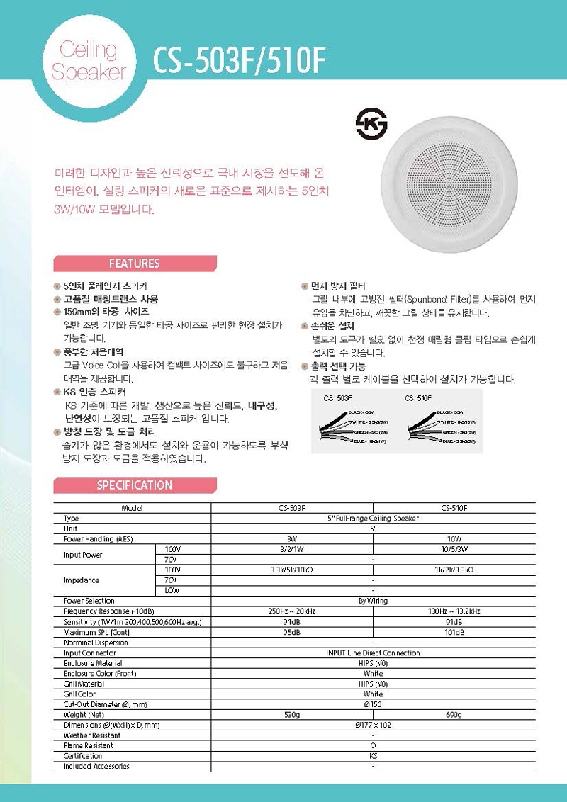 - CS-503F는 5인치 풀레인지 스피커 사용