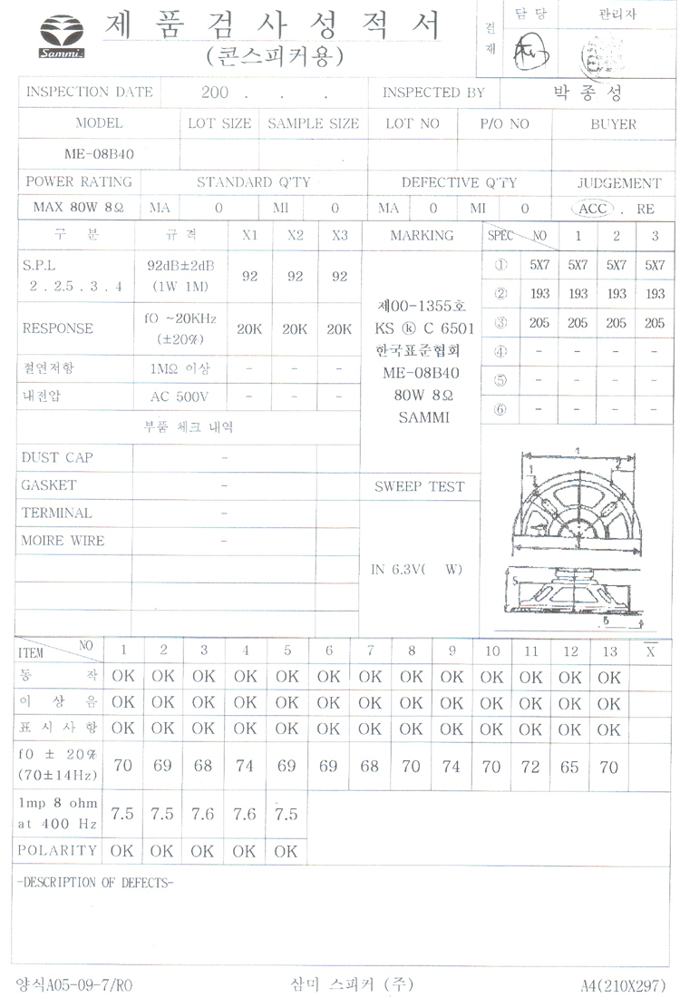 - 제조사 : (주)삼미스피커 / 충북 음성군