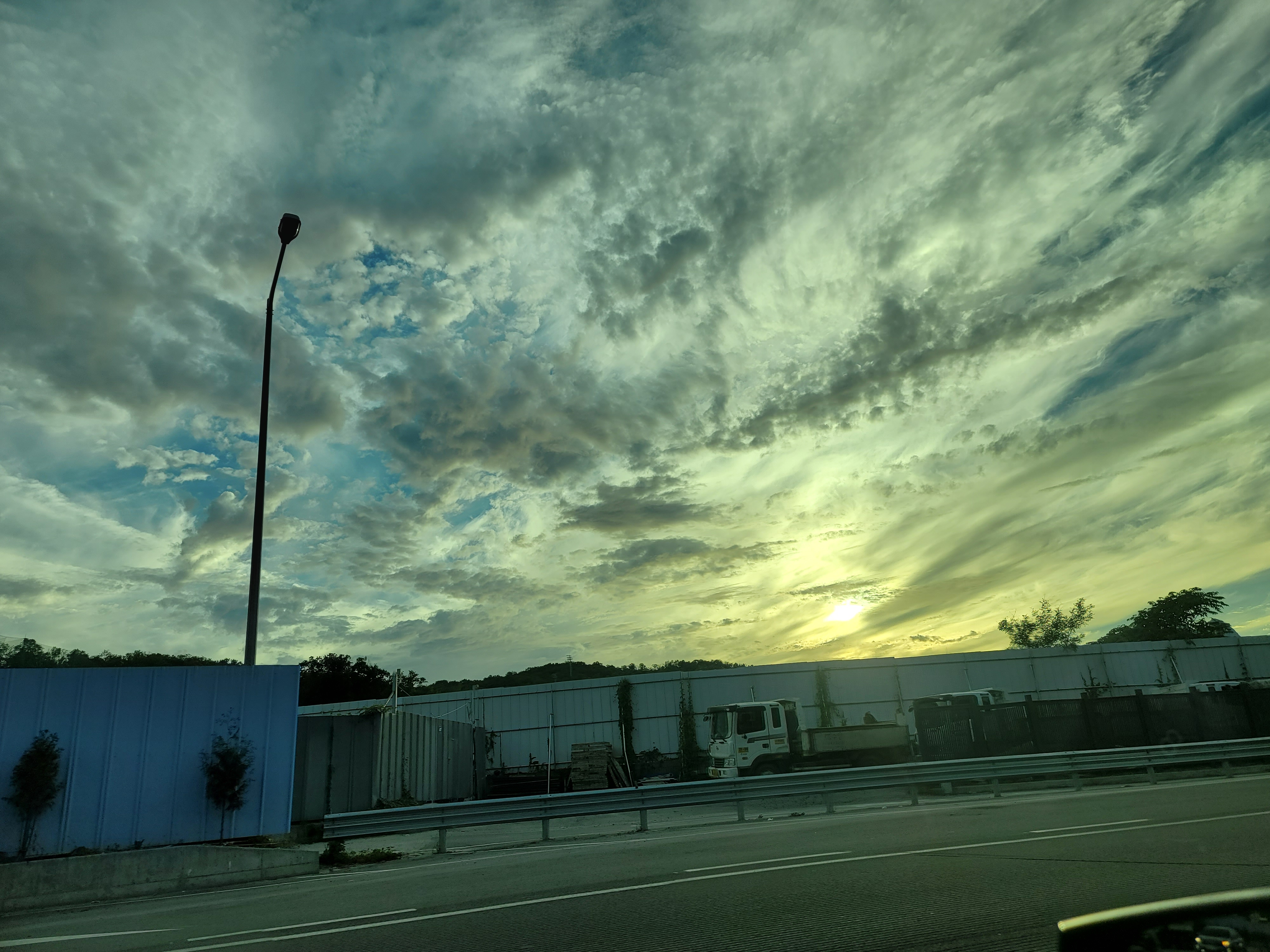 추석 저녁 하늘... 운전중 해가 저물어가는 하늘 노을 빛이 너무 아름다워 한컷...잠시 정체중 촬영 ^^ 안전 운전...