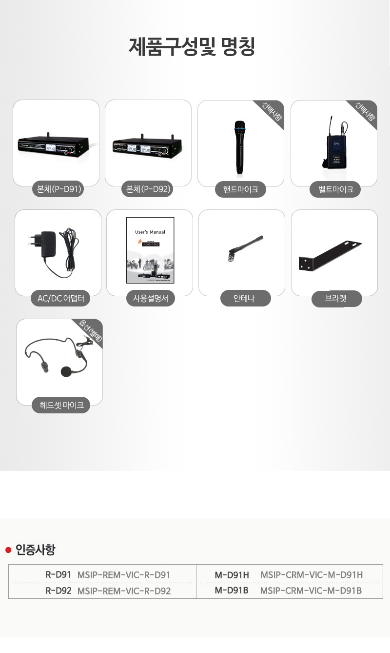- 인증번호 : MISP-REM-VIC-R-D91 / MISP-CRM-VIC-M-D91H / MISP-CRM-VIC-M-D91B