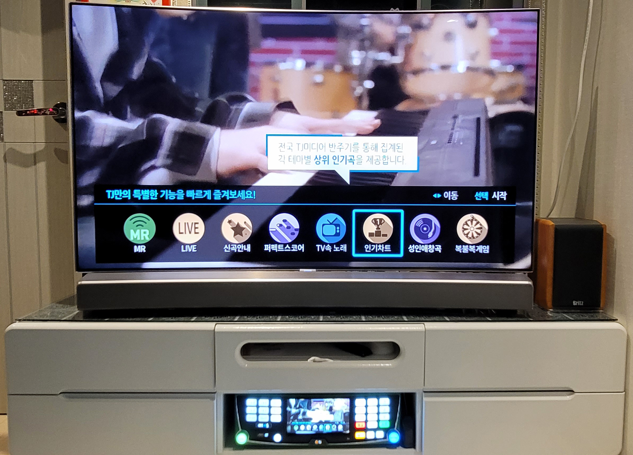 수신기 크기가 작아 노래방기기 옆 빈 공간에 배치...