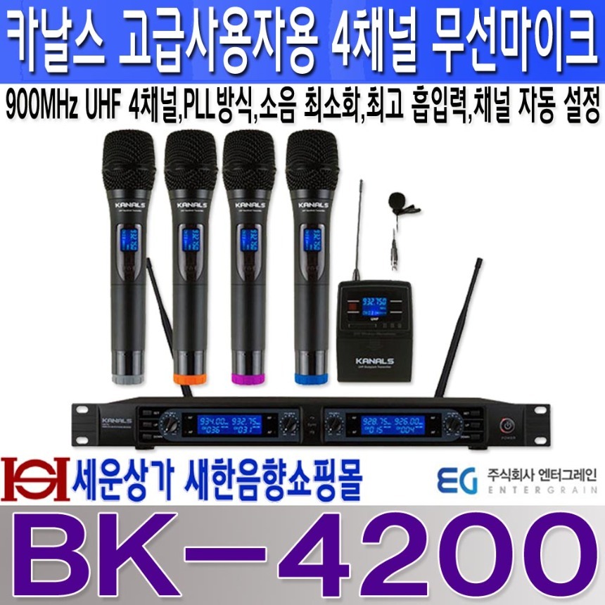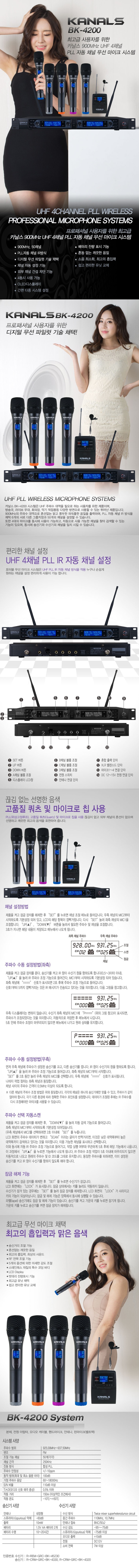 BK-4200,카날스 4채널 무선마이크,900MHz 자동 채널 설정 기능,최고급 사용자용 프로페셔널 무선마이크, BK4200