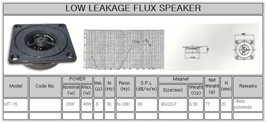 * 제품의 사양 ( MT-15 소구경 고음 스피커 )