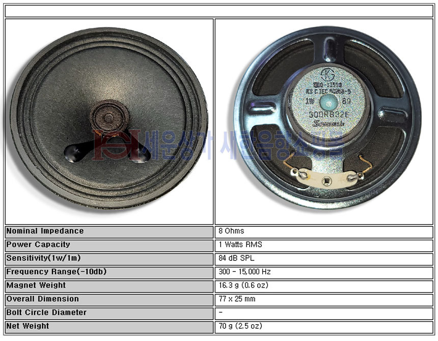 300RB326, 삼미 소구경 풀레인지 스피커 PA Speaker Unit, 1W, 아파트 세대 스피커 교체용, 앰프 모니터 스피커, 의료 장비, 산업용 기자재등 사용 본문