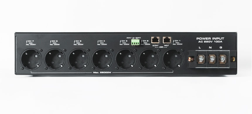 - 후면의 7개채널을 순차적으로 전원 ON/OFF하며, 전면에 1개의 DIRECT POWER OUT 소켓으로 구성되어 있습니다.