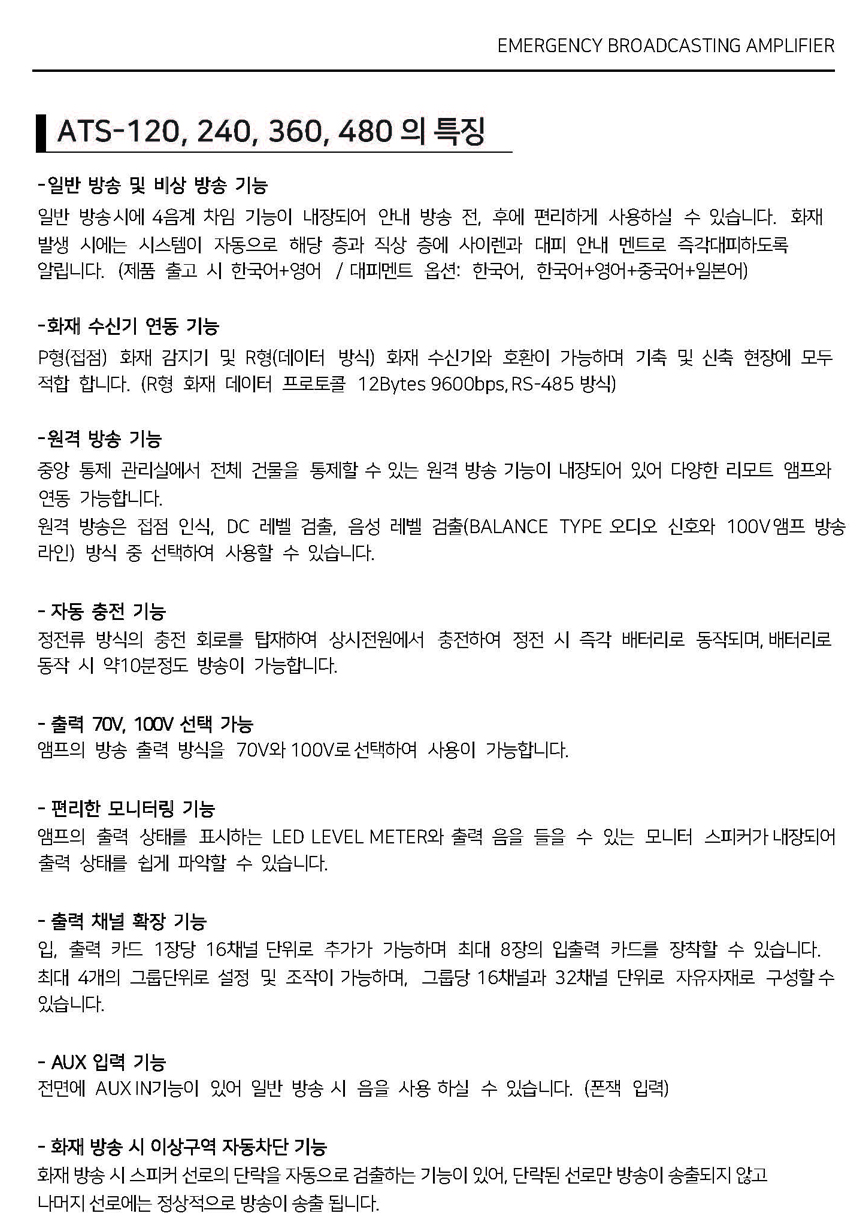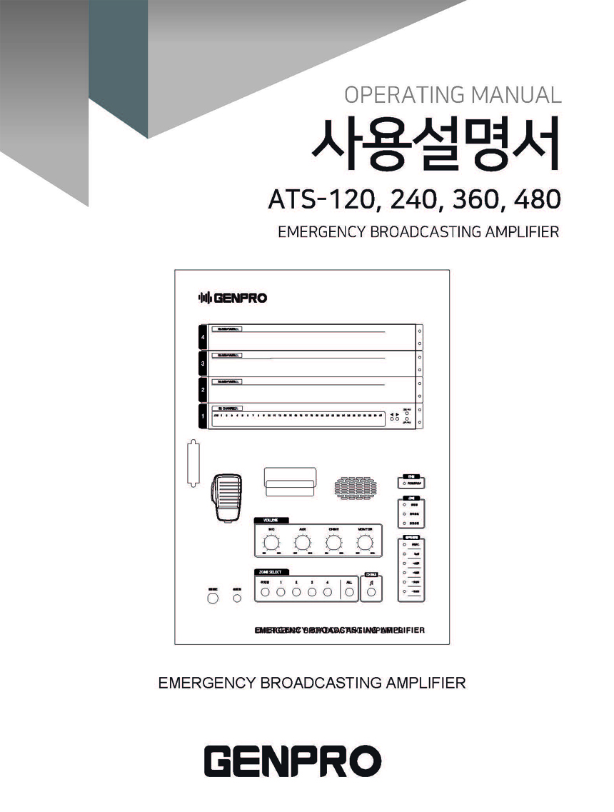 젠프로(GENPRO) 화재 비상 방송 앰프 메뉴얼, ATS-120, ATS-240, ATS-360, ATS-480 사용자 메뉴얼, 벽부형 소방엠프, 젠프로 소방엠프 본문