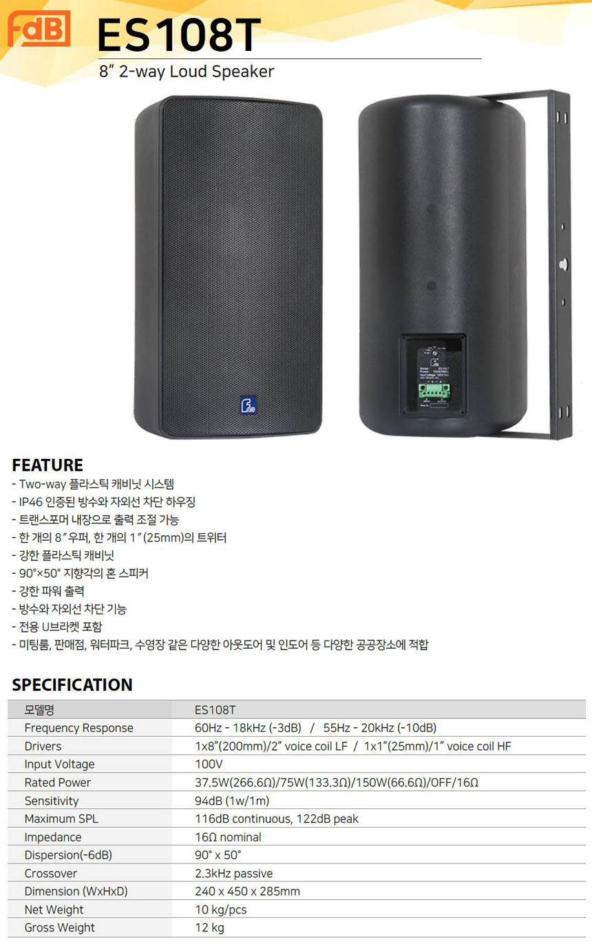 #ES108T #FDB #방수스피커 #방진스피커 #야외스피커 #공원스피커 #워터파크스피커 #회의실스피커 #팬션스피커 #놀이공원스피커 #철도스피커 #수영장스피커 #공원스피커