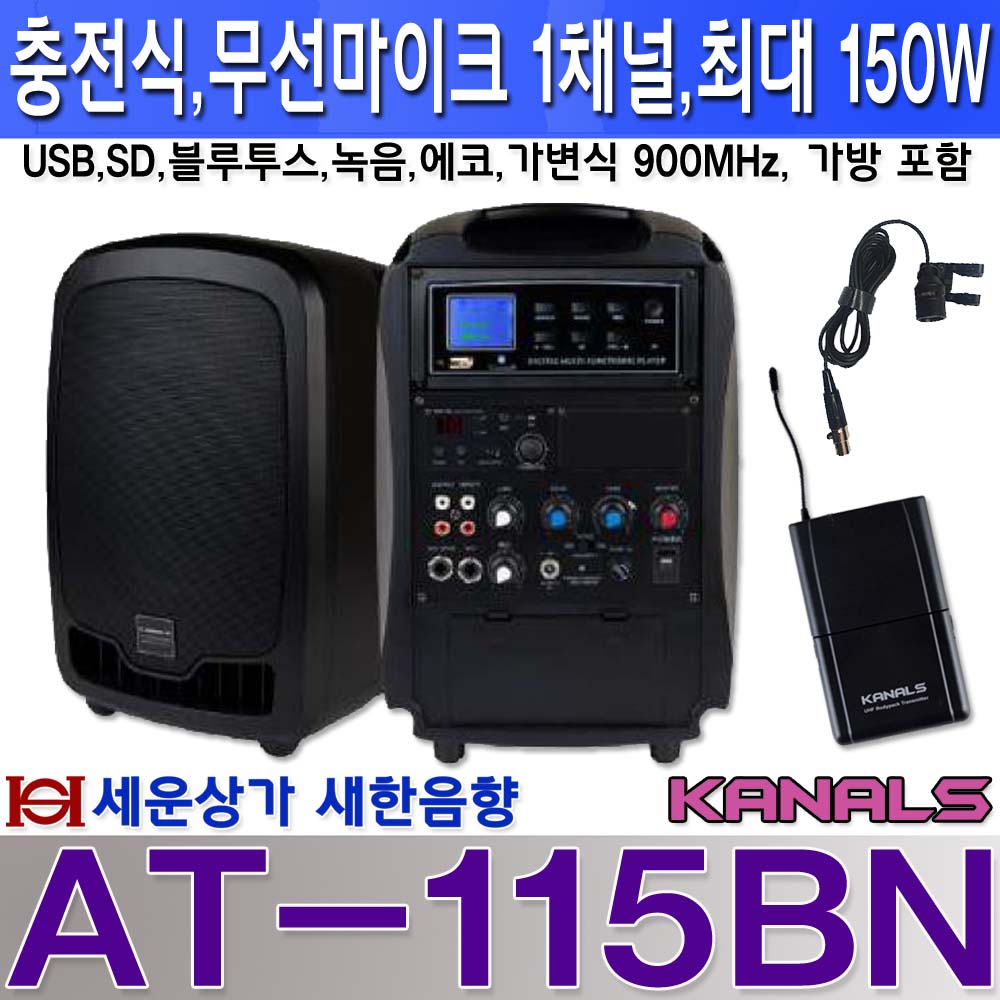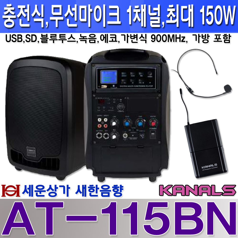 AT-115BN 카날스 충전식 엠프 150W, 1채널 무선마이크,블루투스,USB,SD,녹음,에코 기능 / AT115BN / 가방 포함