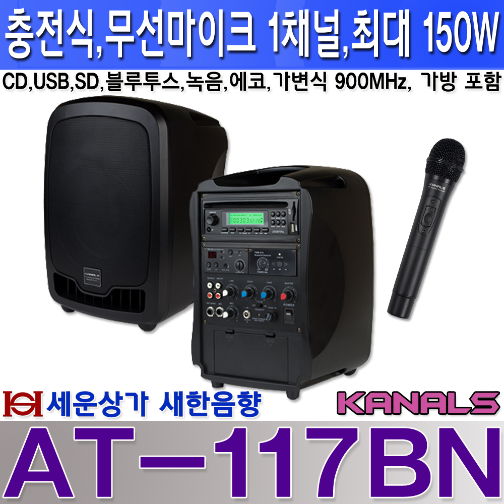 AT-117BN 카날스 충전식 엠프 900MHz 1채널 150W, 블루투스, CD, USB, SD, 녹음, 에코, 뮤트 기능 / AT117BN 본문