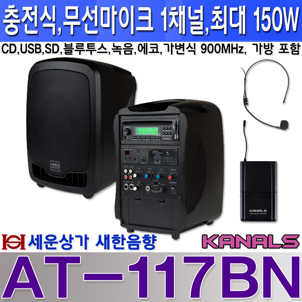 AT-117BN 카날스 충전식 엠프 900MHz 1채널 150W, 블루투스, CD, USB, SD, 녹음, 에코, 뮤트 기능 / AT117BN 본문