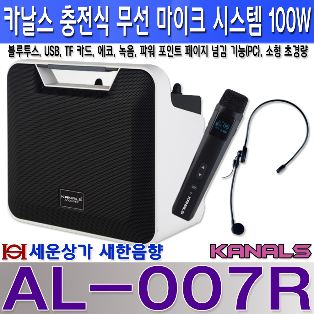 AL-007R 카날스 소형 충전식 앰프 100W, 1채널 무선 마이크, 블루투스, USB, 에코, 녹음, 뮤트 / AL007R / 강의, 프레젠테이션, 제품 홍보, 안전 교육등 본문