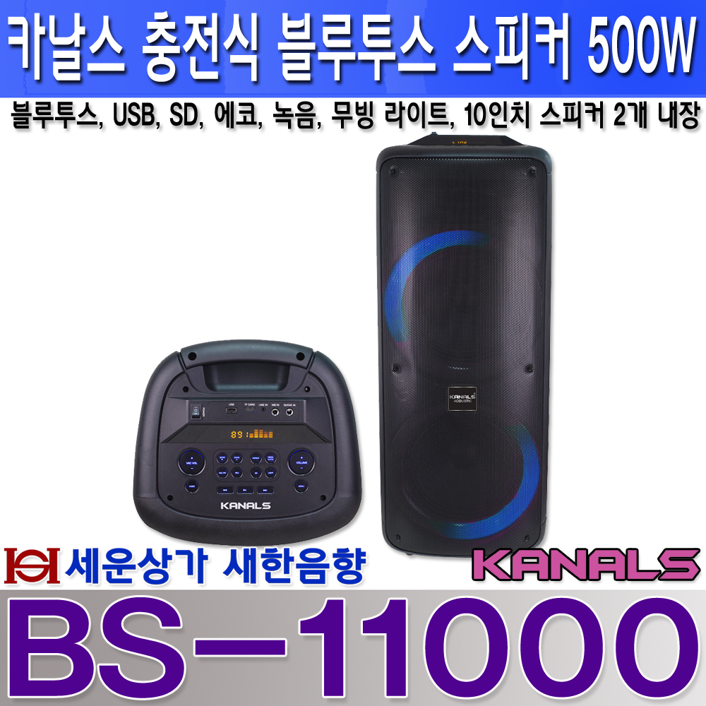 BS-11000 카날스 충전식 스피커 500W, 블루투스, USB, 녹음, 무빙 라이트 : 세운상가 새한음향