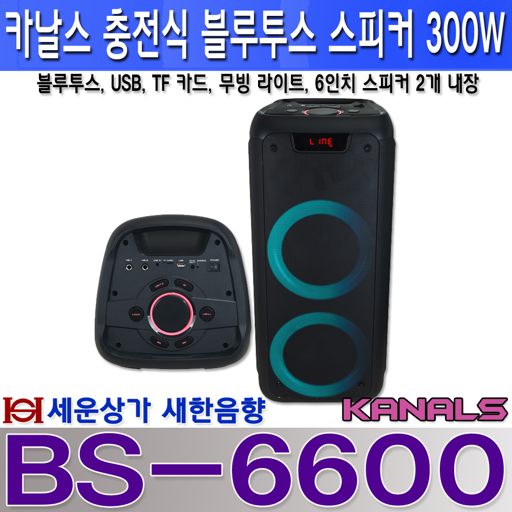 BS-6600카날스 충전식 스피커 300W, 블루투스, USB, 무빙 라이트/BS6600 : 세운상가 새한음향