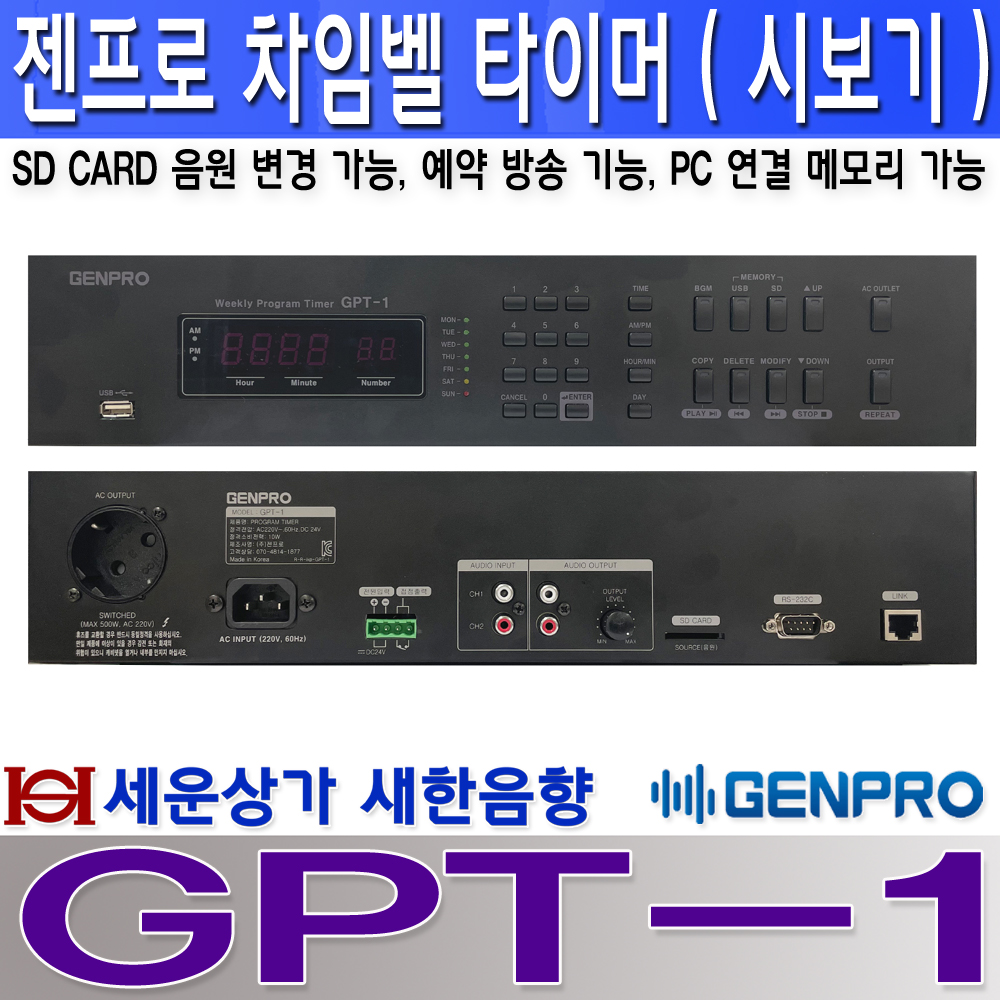 GPT-1 젠프로 주간 차임벨 타이머, 시보기, USB, SD음원 사용, 음원 변경 가능, PC 연결 , 예약 방송 기능, BGM 플레이어 기능, GPT1