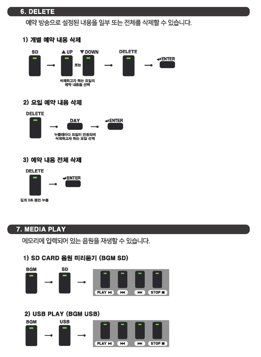 요일별 메모리, USB, SD 카드 MP3 음원 예약 방송, BGM 플레이