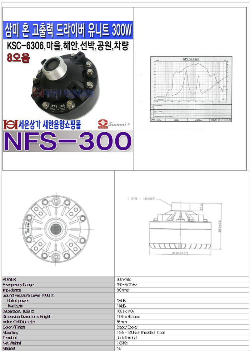 NFS-300, 삼미 스피커 고출력 드라이버 유니트 300W, 마을 방송, 차량, 선거, 헬기, 해안가 방송, 경고 방송 등 /NFS300 본문