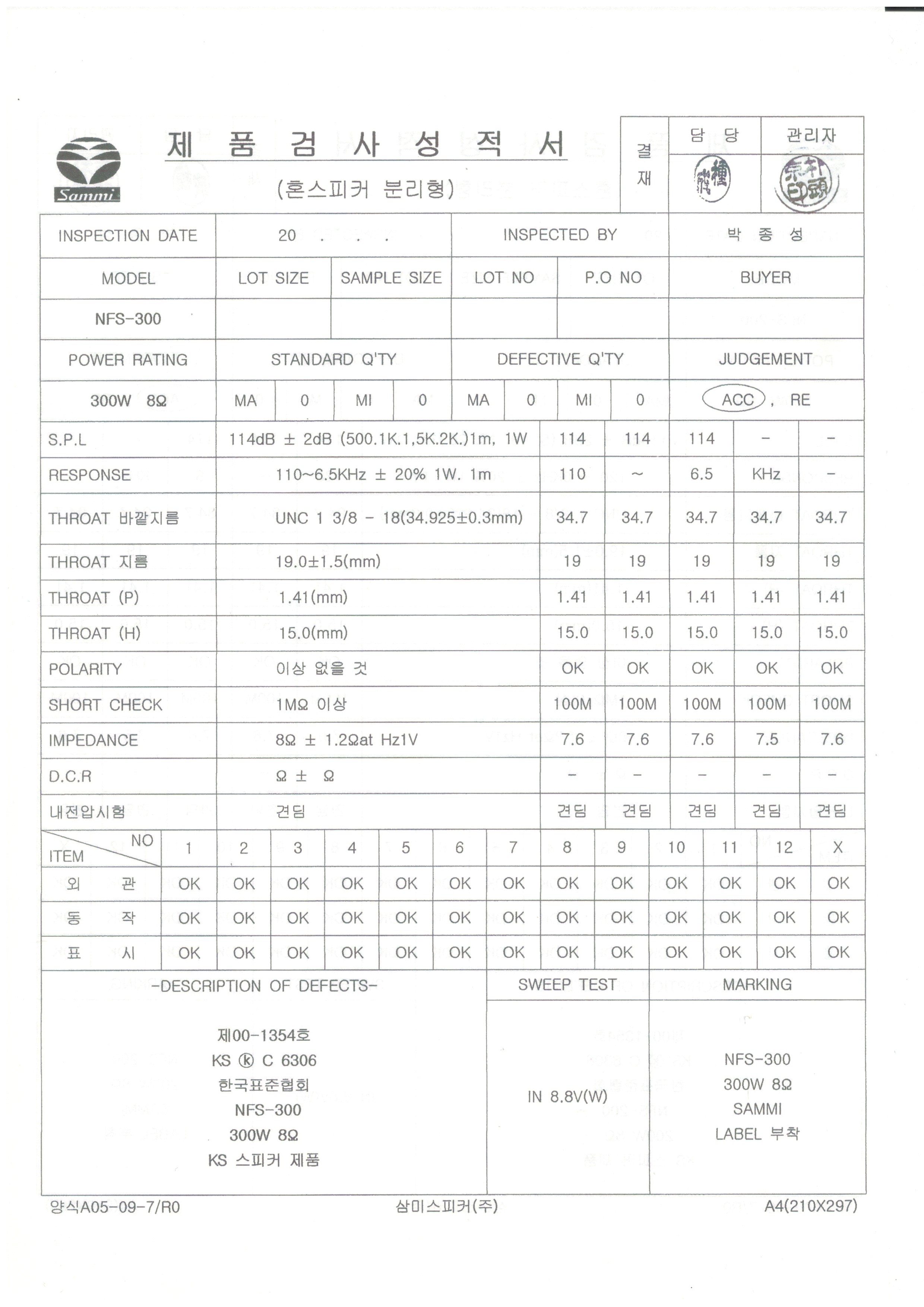 Sammi Driver unit NFS300, 300W한국산업규격 KSC-6306 분리형 표시 인증고출력 혼 결합용 드라이버, NFS300마을 방송, 바닷가, 선박, 차량, 선거,오토바이, 해안가 방송, 헬기등