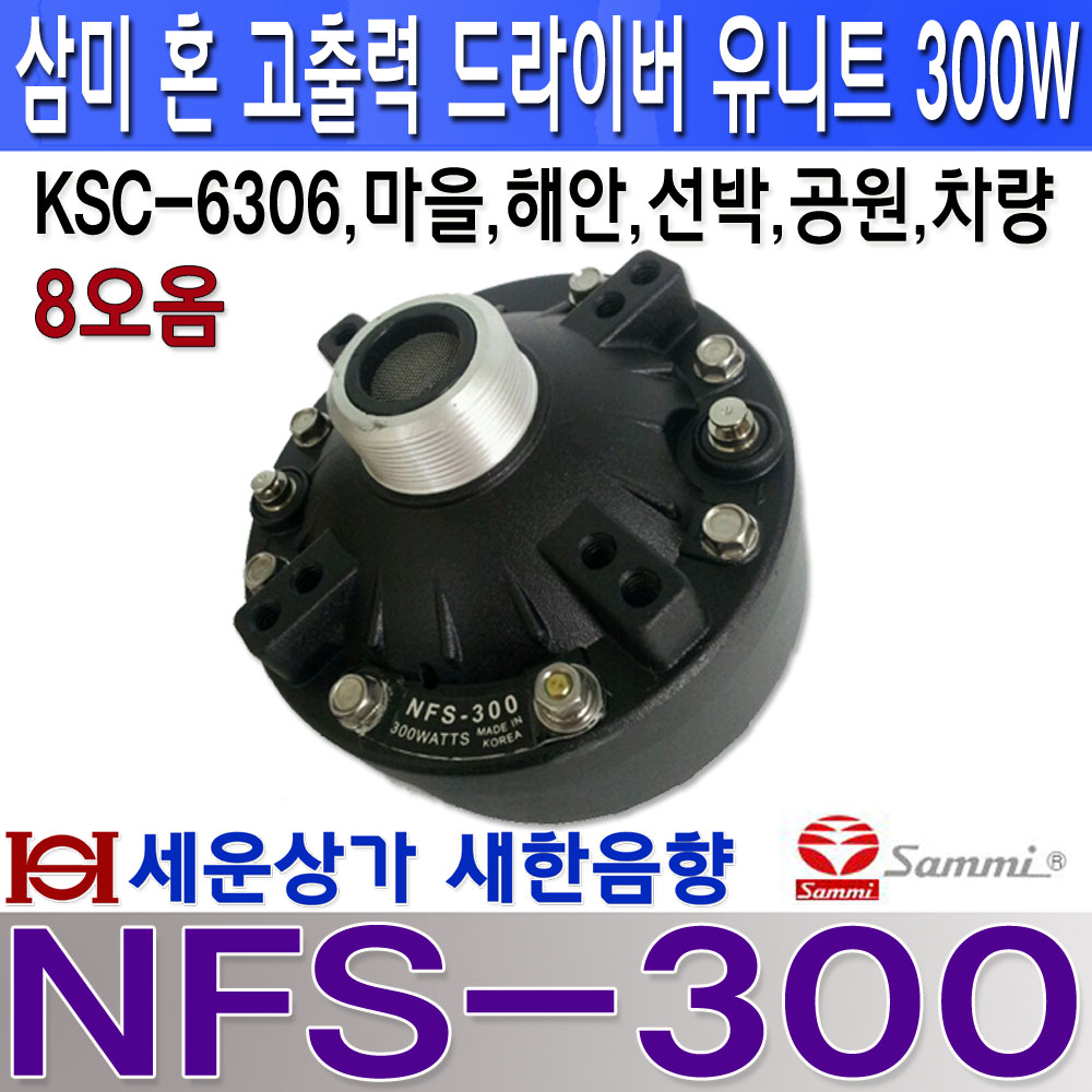 Sammi Driver unit NFS300, 300W한국산업규격 KSC-6306 분리형 표시 인증고출력 혼 결합용 드라이버, NFS300마을 방송, 바닷가, 선박, 차량, 선거,오토바이, 해안가 방송, 헬기등