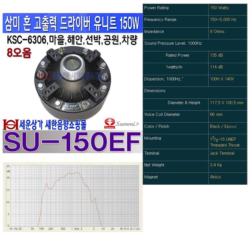 SU-150EFSammi Horn Driver Unit 150W한국산업규격 혼스피커 KSC-6306 인증삼미스피커 드라이버 유니트 SU150EF마을,해안,선박,재난방송,관공서,군부대,차량,선거차량,선박등