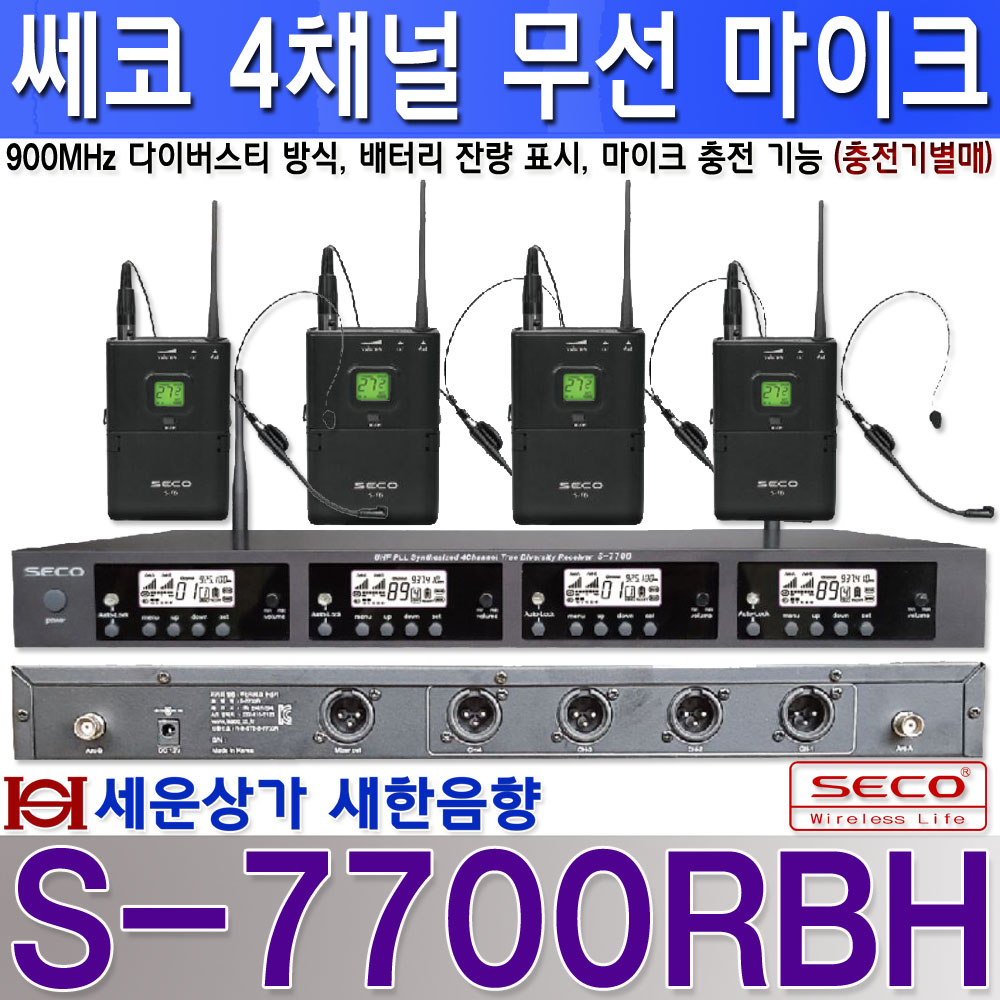 #4채널무선마이크 #쎄코무선마이크 #900MHz무선마이크 #공연무선마이크 #회의실무선마이크 #강의실무선마이크 #강당무선마이크 #교회무선마이크 #법당무선마이크 #행사무선마이크 #충전식무선마이크 #전시장무선마이크 #국산무선마이크 #스튜디오무선마이크 #방송제작무선마이크 #S7700RH