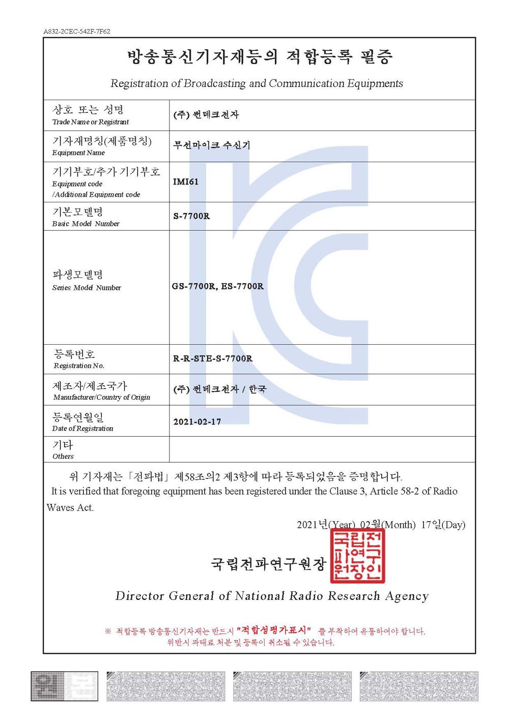 - 인증번호 : R-R-STE-S-7700R / MSIP-CRM-STE-UX-7H