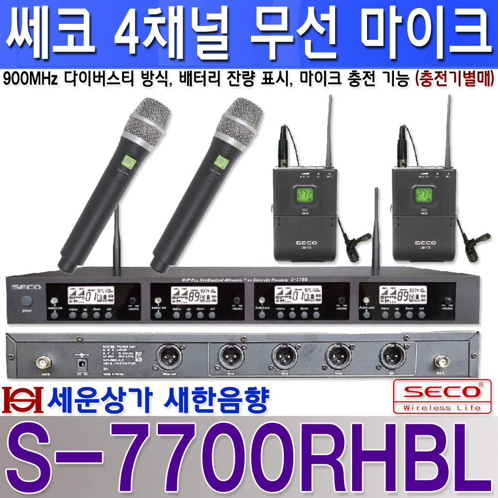 S-7700RH 쎄코 4채널 무선 마이크, 900MHz 전문가용, 배터리 잔량 표시 / SECO S7700RH 본문