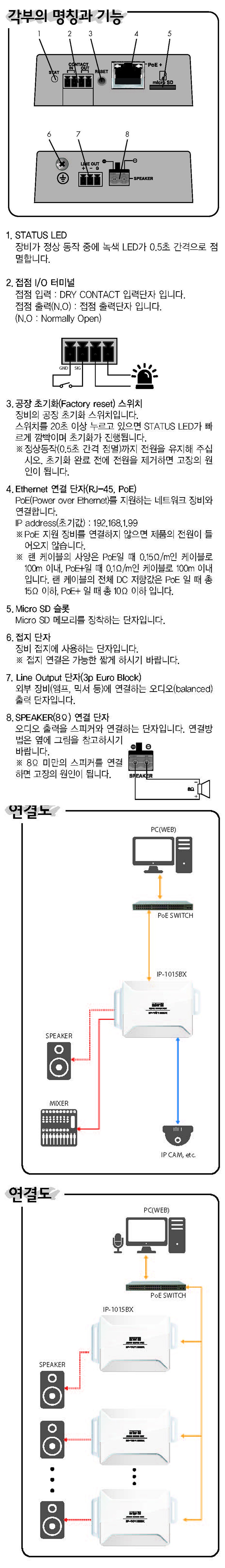 * 제품의 특징 및 사양 ( 인터엠 네트워크 오디오 브리지 박스 IP-1015BX )