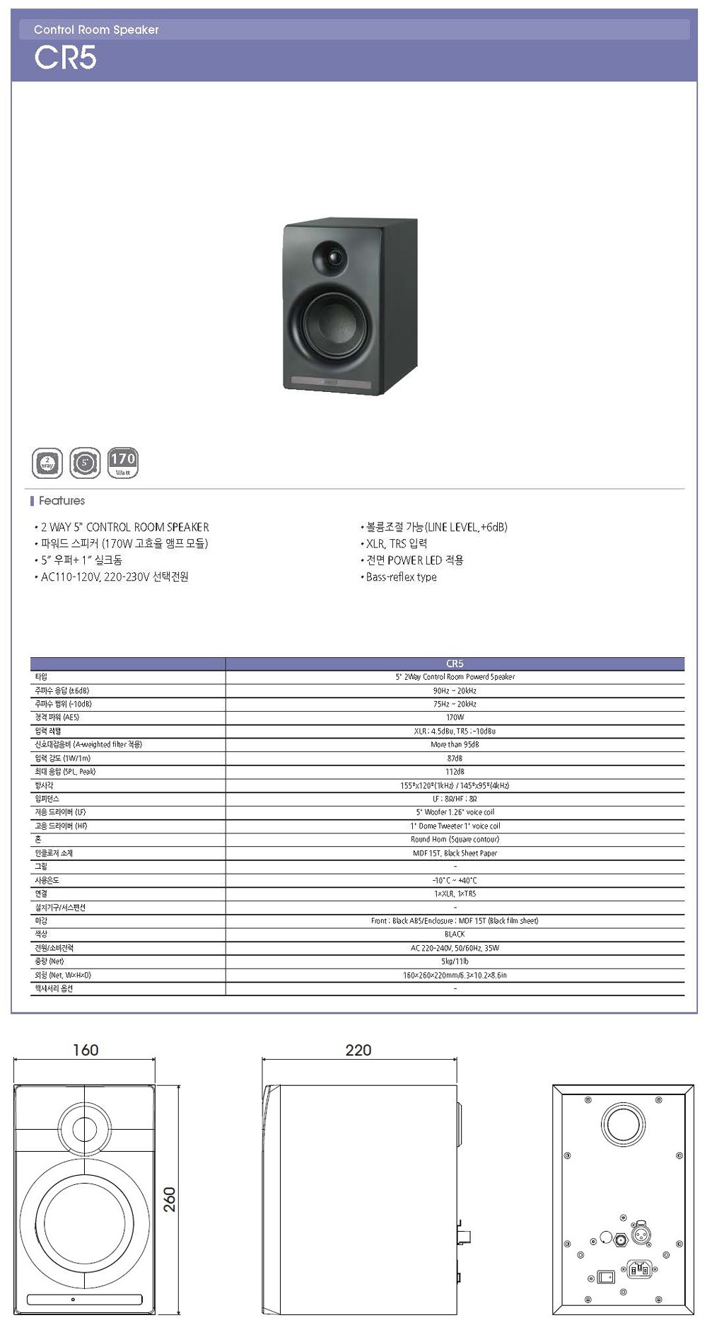 * 제품의 특징 및 사양 ( 인터엠 액티브 모니터 스피커 CR5 )
