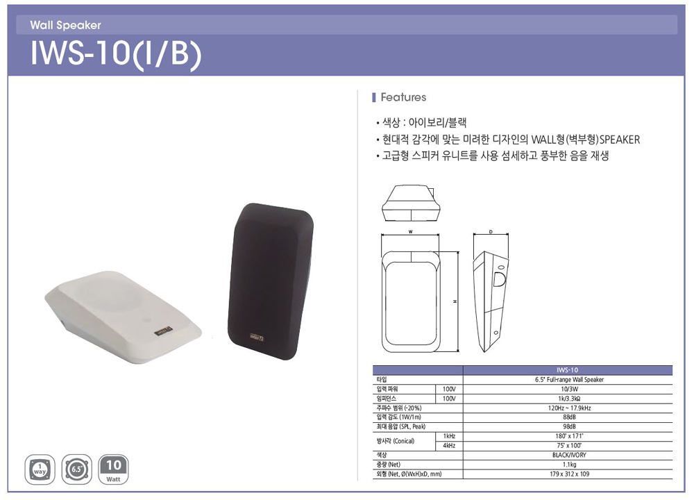 * 제품의 특징 및 사양 ( 인터엠 실내 벽부형 스피커 IWS-10 )