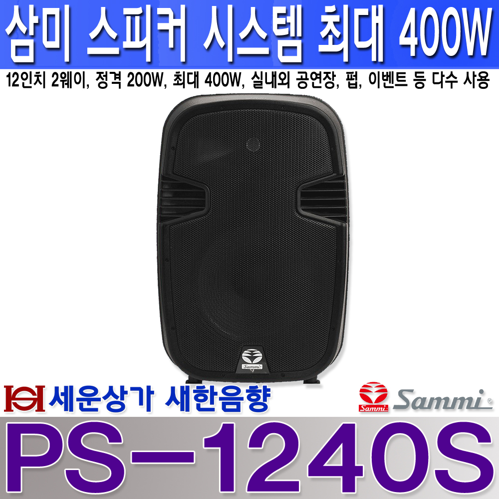 PS-1240S 삼미 스피커 시스템, 정격 200W 최대 400W, 12인치 2웨이 방식, 임피던스 8오옴, 실내외 공연장, 펍, 이벤트 등 다수 사용 / PS1240S