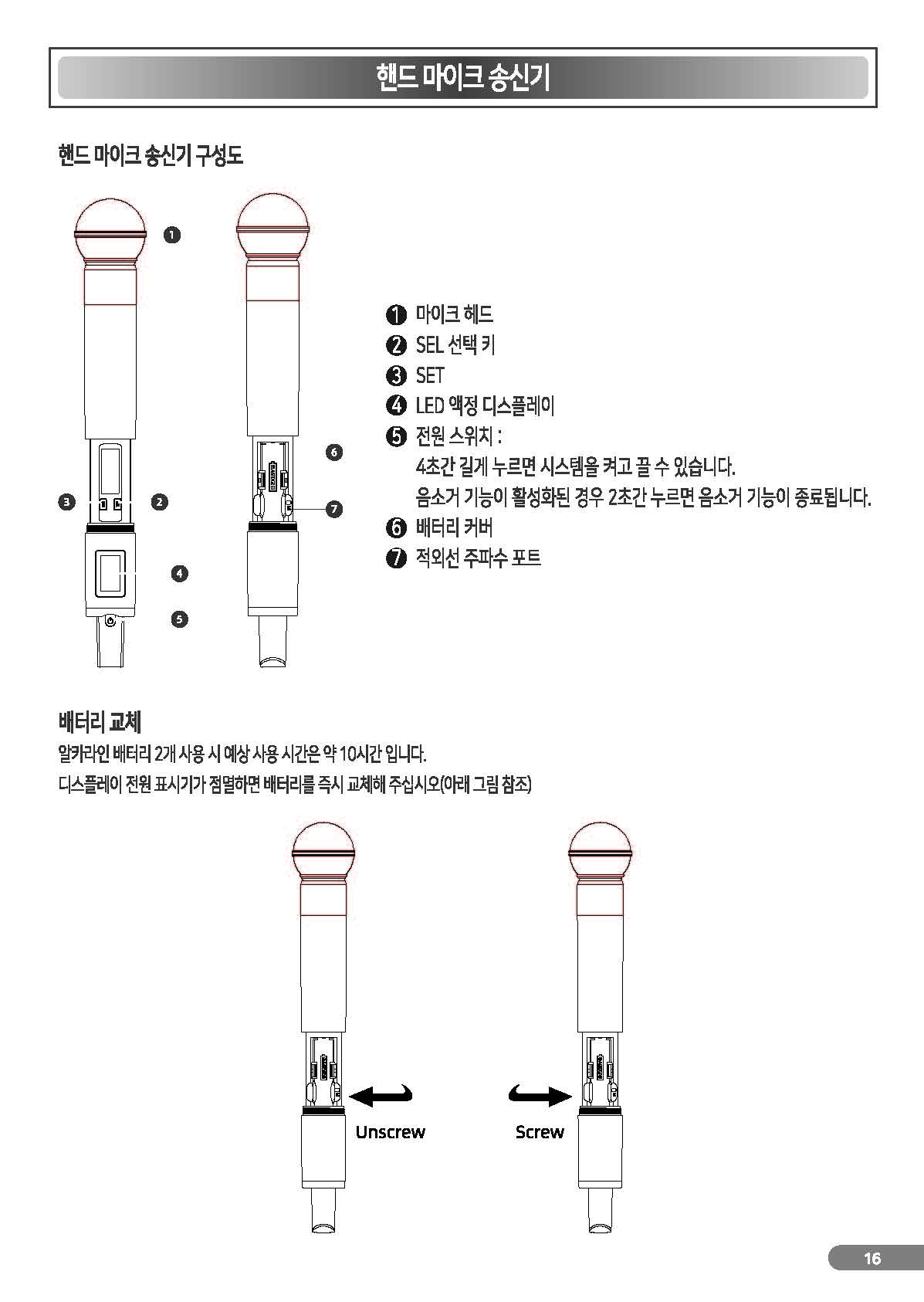 무선 마이크 타입별 상세 이미지