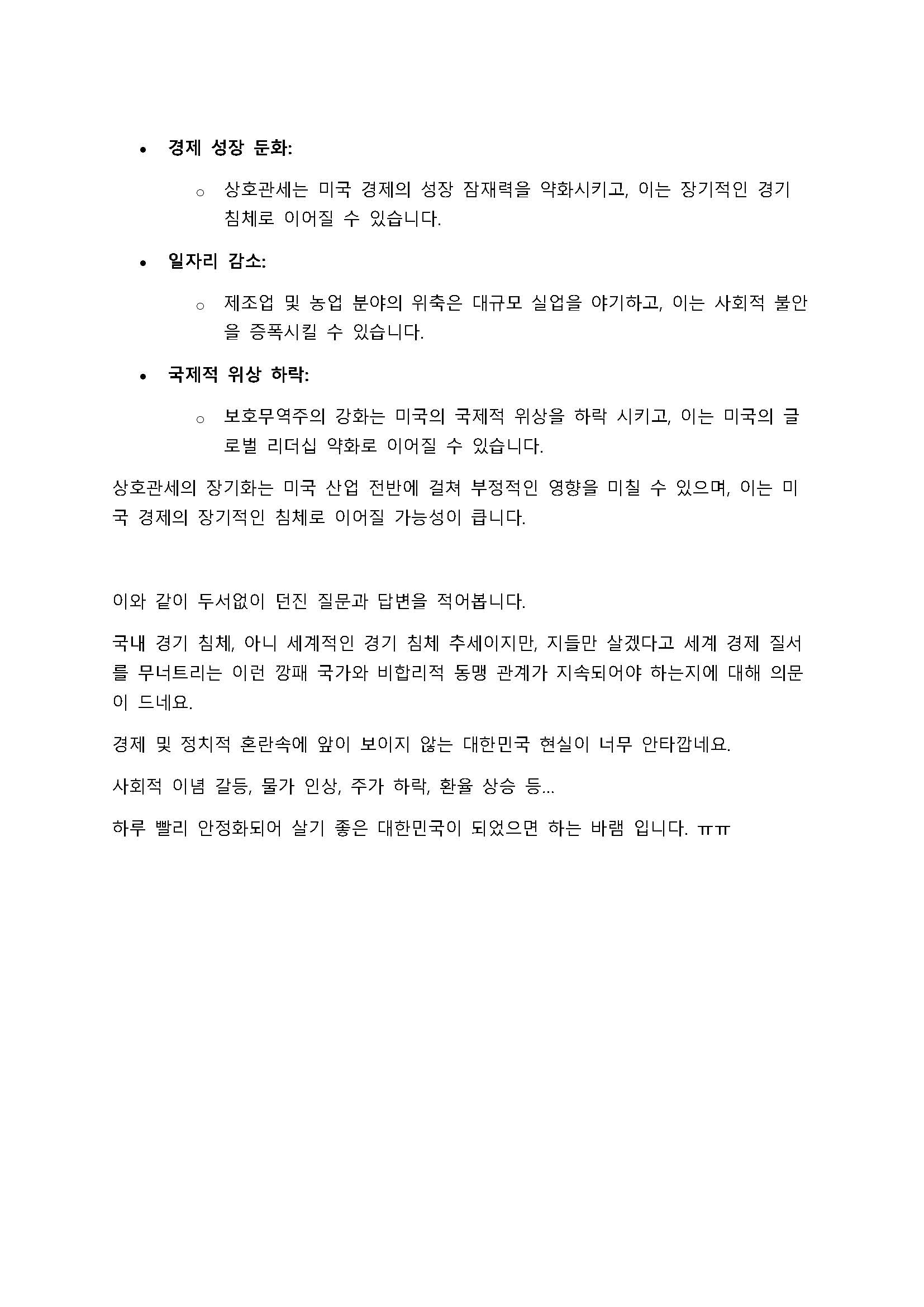 <상호관세> 세계의 질서를 잡는 경찰 국가로 자칭하던 국가, 세계의 민폐 국가 깡패 국가로 전락한 미국의 현실 본문